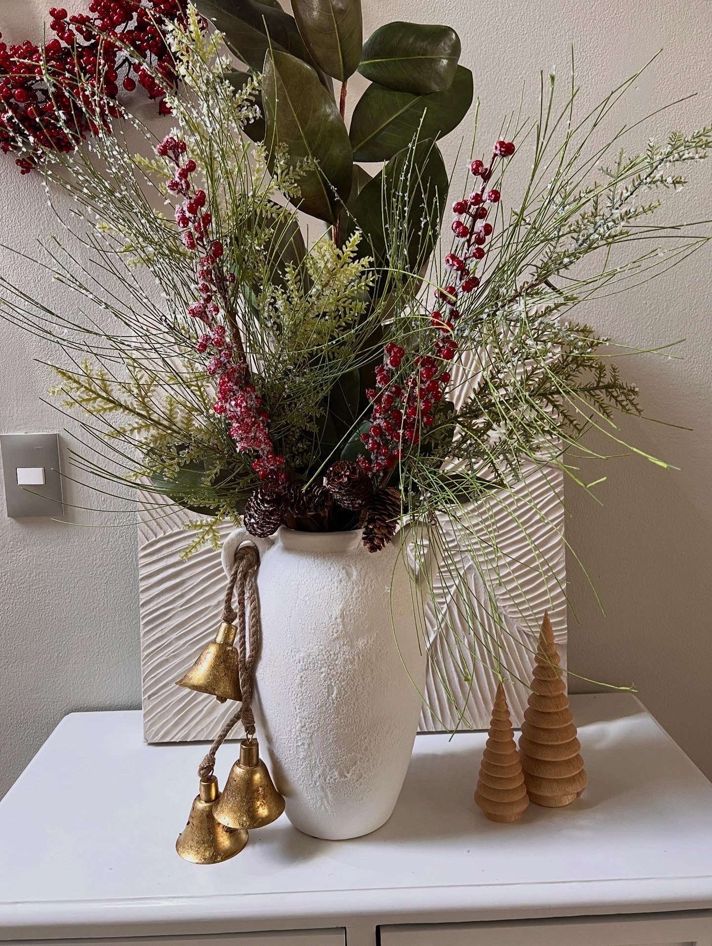 Rama de ciprés nevado con berry